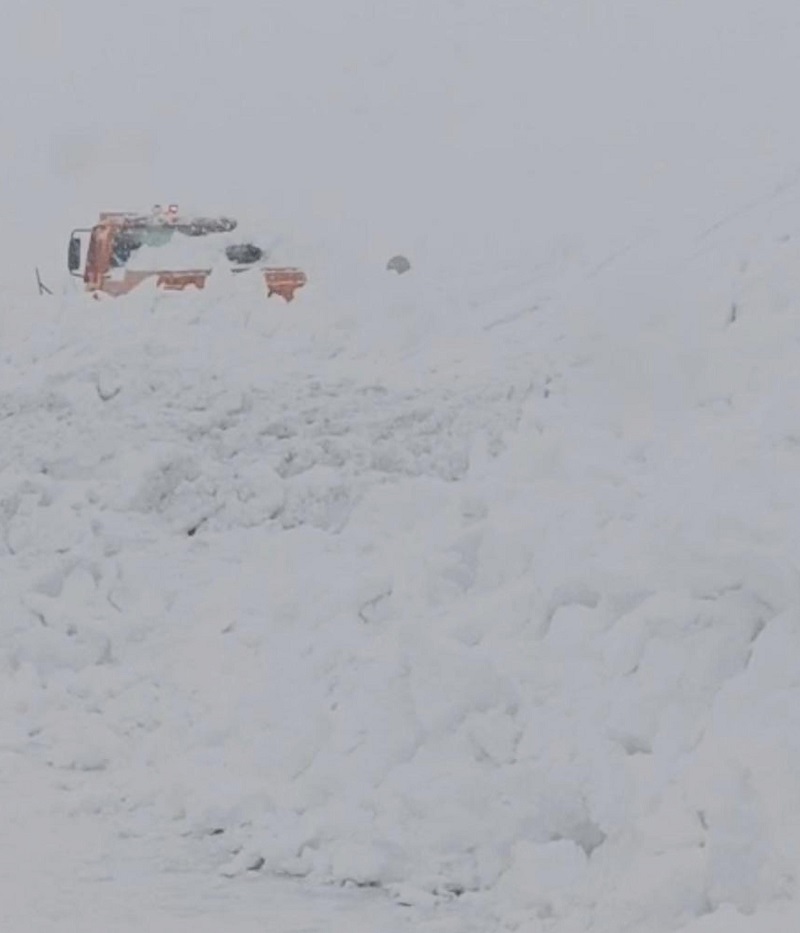 Karayolları kar küreme aracına çığ düştü